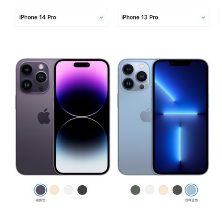 iPhone14系列正式发布,iPhone14Pro和14ProMax还有一种全新的配色深紫色诞生,远峰蓝正式成为历史,但除了深紫色,其他两种颜色也有变化。